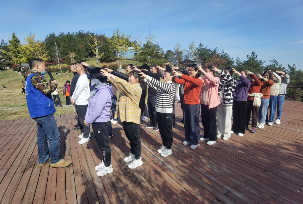 在天池山山清水秀的环境中,学院工会组织了若干个团建小游戏,吸引了教职工们的极大与热情。活动中老师们全神投入,遵照教练员的指令迅速组队完成项目,在感受快乐的同时,增进交流、愉悦身心、促进合作!
