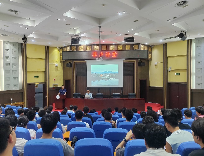 王炎松教授以自身经历为引,围绕流坑写生基地的建筑设计,向同学们展示“金峰之谷”“乌江之筏”“绚彩之花”“乌江之舟”四个建筑设计方案的巧妙构思,启发员工的设计思维。