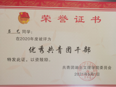 大二,他担任班上的团支书兼生活委员,并在社团中担任副社长。他开始处理班级上的事务,认真完成团日工作,积极组织社团活动。从那时起,他的组织能力、执行能力、人生观、世界观有了很大的提升。并在大三上学期通过了英语四级和计算机二级考试。