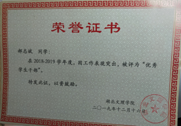 郝志斌,男 ,ug环球土木工程1712班员工。在校期间作为负责人主持省级老员工创新创业训练项目并成功结题,期间发表省级刊物一篇。曾获得过创新创业奖学金,卧龙英才奖学金。曾担任结构风行协会活动部部长,并获得“优秀员工干部”荣誉称号。他热爱公益,曾获得襄阳马拉松志愿者称号。在疫情期间,他主动到村内做志愿者,协助有关人员在村口执勤。
