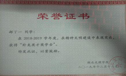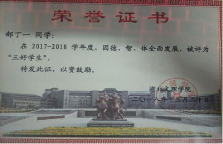 郝丁一,男,土木工程1712班级优秀毕业生,曾获得过卧龙英才奖学金、创新创业奖学金、三等奖学金、三好员工,担任过志愿服务部部长、土木工程1913班代理班主任、心理委员,参加过省交建厅项目、参加过两次全国承重大赛、工程测量大赛、辩论赛三等奖、襄阳马拉松优秀志愿者。