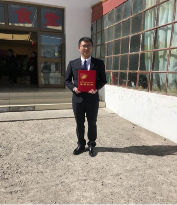 2017年6月毕业后,积极响应国家号召,时刻将自己所知所学应用于国家的建设中,他毅然放弃国内国企私企的优厚待遇和舒适环境,主动前往被称为“世界屋脊的屋脊”“生命禁区”的西藏阿里地区工作,现就职于阿里地区日土县日松乡人民政府,2018年9月被抽调至地区生态环境局挂职锻炼。2020年2月至5月,受新冠肺炎疫情影响,主动请缨,自觉加入防疫队伍,在疫情防控大局面前任劳任怨,持续加班加点高质量完成相关工作,同时积极响应阿里地委、行署的号召,在共同防疫中积极帮助他人,积极捐款捐物,及时帮助返岗和回乡人员对相关疫情防控政策进行讲解和宣传,得到了领导和群众的一致好评。在单位日常工作期间,态度踏实、主动认真,表现良好,较好地完成了科室和单位领导交办的各项工作,于2019、2020年度被评为地区生态环境局“优秀共产党员”。