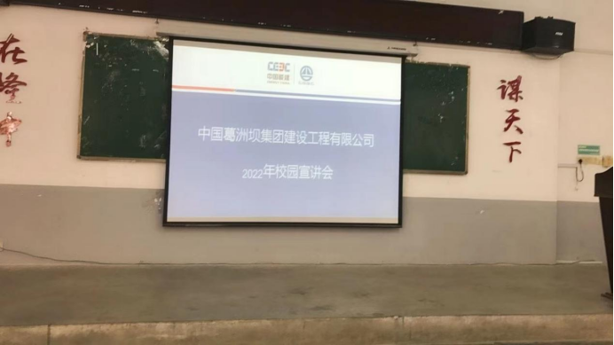 (通讯员 贾勉)2021年9月14日星期二上午10点,中国葛洲坝集团建设工程有限公司于北区4栋阶梯01教室举办2022年校园宣讲会。公司同学积极参与,共计投递七十多份简历。会后企业将通过筛选简历,举行线上面试。